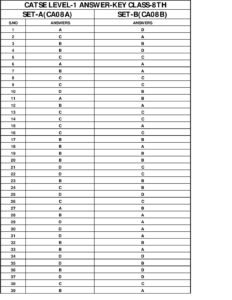 CATSE LEVEL-01-ANSWER-KEY-CLASS-8TH